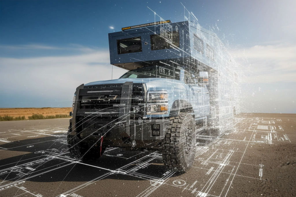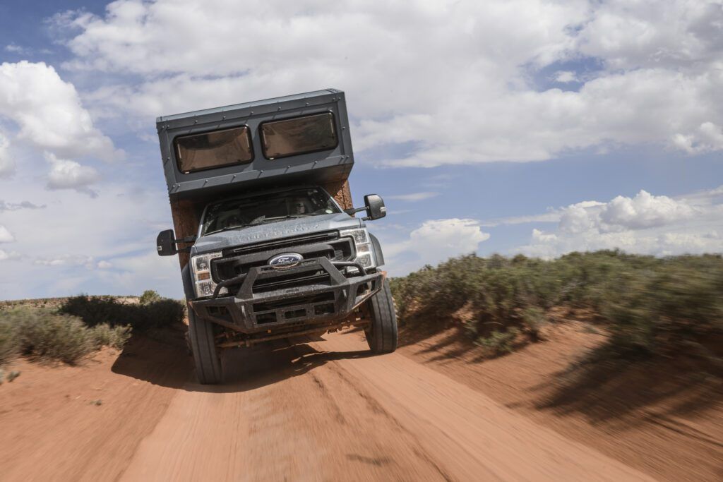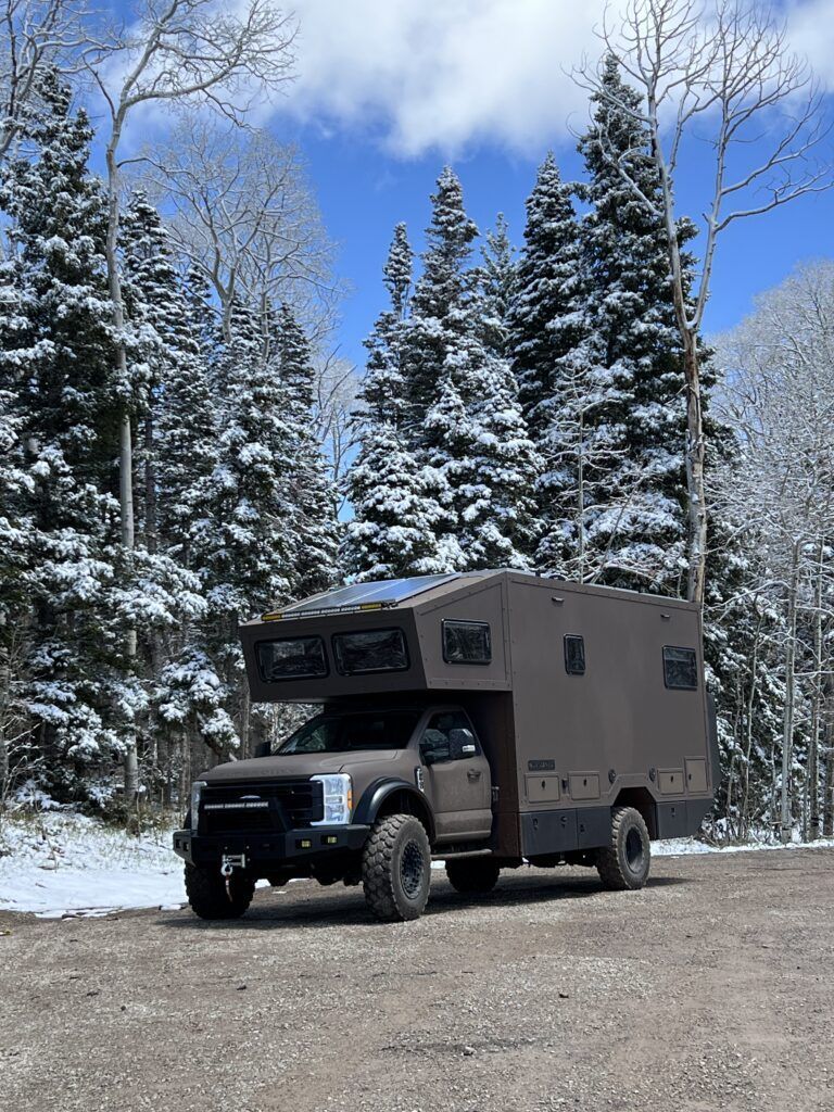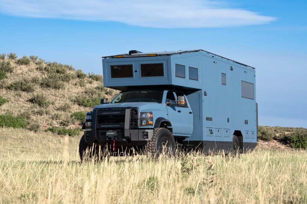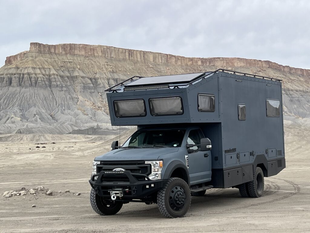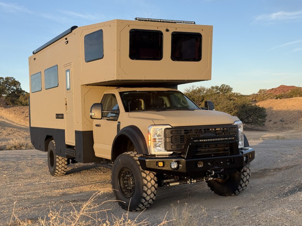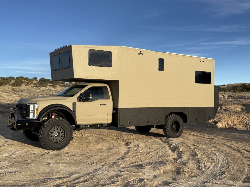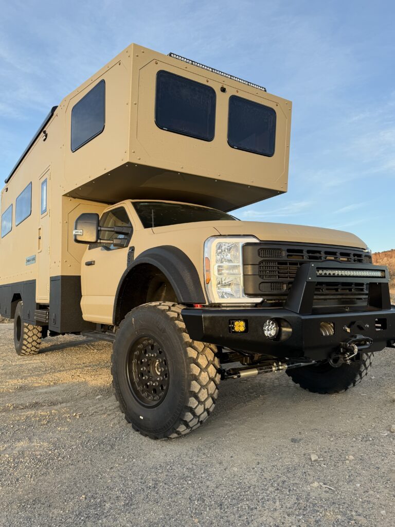 We call it Fortress, but to some of our customers its known as “the land yacht.” This larger, long-range expedition home is built on a heavy-duty Ford F-750 or International HV 4×4 chassis, delivering maximum stability for serious off-road living. With advanced suspension, massive power and water capacity, and fully customizable interiors, it carries 4–6 people in home-like comfort—combining durability with luxury amenities and extended self-sufficiency. Available in lengths from 27’ to 35’ and up to 44” on a medium duty chassis.