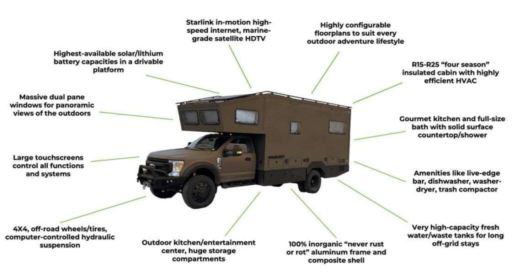 With 4×4, up to 20″ clearance, R15+ 4-season construction and a huge list of amenities, the Wanderbox Basecamp Edition sets a new standard for $300K Super Cs.