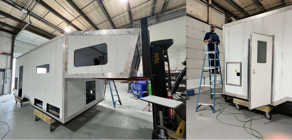 The finished frame is lightweight but very strong, and our design works for any length Wanderbox and lets us place windows, doors and hatches pretty much anywhere the customer wants these. This habitat design is a differentiator since it allows us flexibility that other manufacturer’s designs don’t.